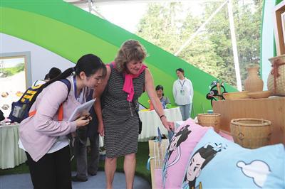 此外,在论坛召开同期展出的武隆绿色产品博览会巡展会上,武隆生态工业、智慧旅游、绿色农业、非遗产品等相关展品强力吸睛。无论是沧沟西瓜、高山蔬菜等我区特色农产品展区,还是在蜡染制作、青吉粽编等非物质文化遗产展区,都吸引了国内外嘉宾驻足观看。在武隆豆腐干展区,国外嘉宾品尝后对武隆豆干赞不绝口。