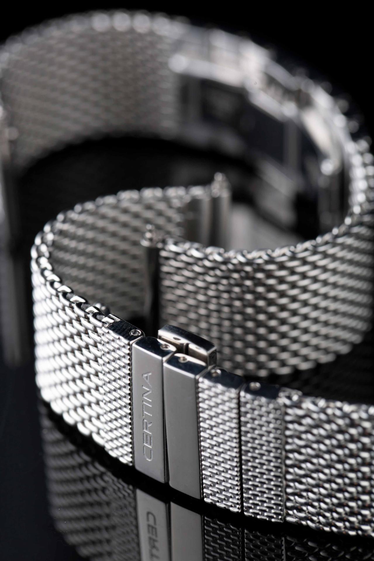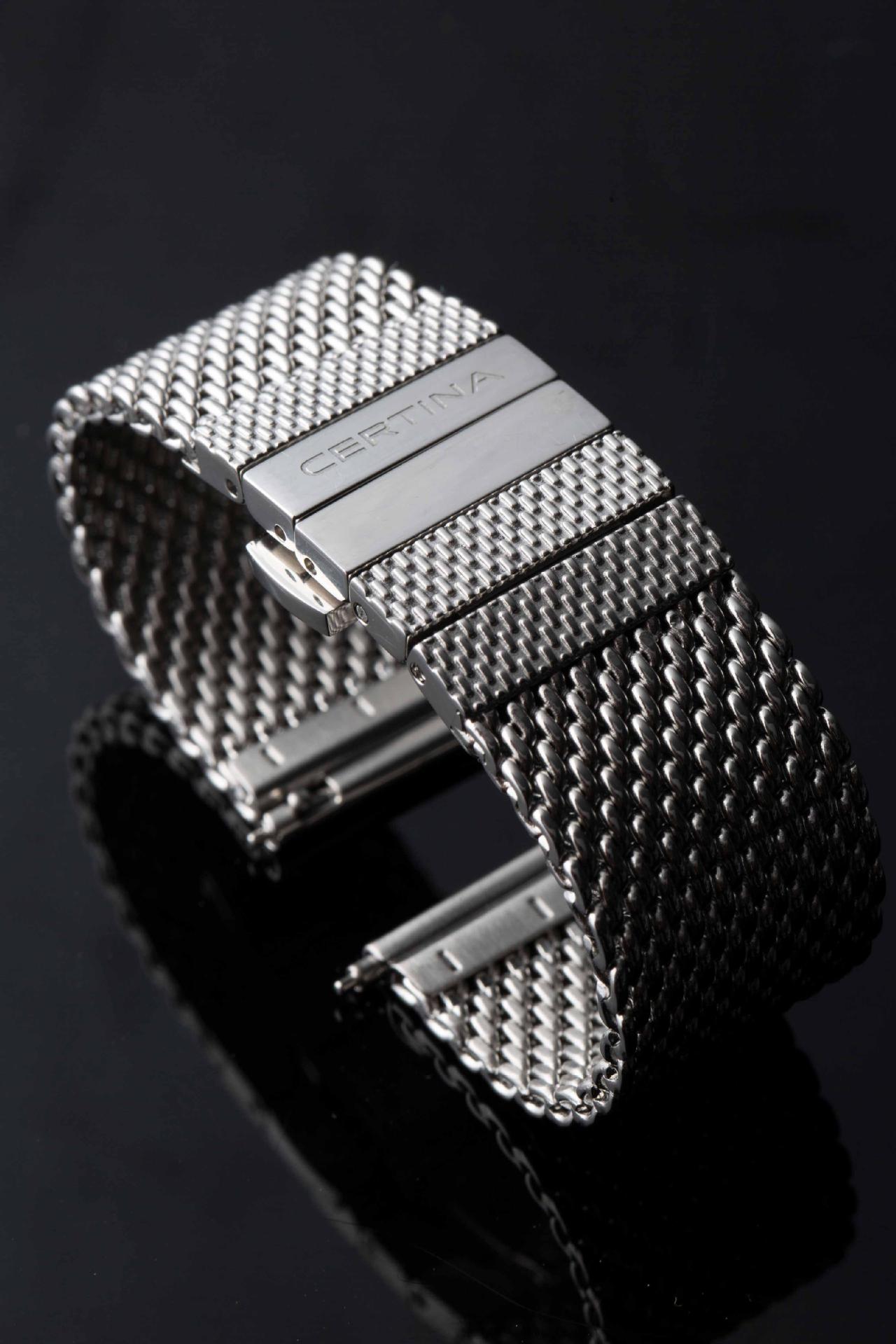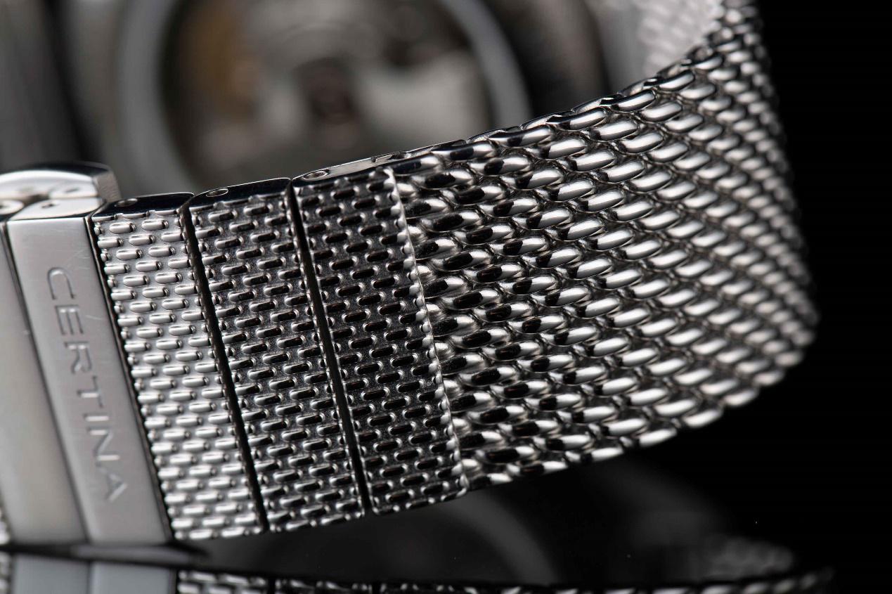 例如瑞士Certina雪铁纳,就在今年新推出了一条米兰编织表带,做工质量很好,而设计更是出彩,表带前端采用编织+抛光的工艺,到表扣处则采用横向精钢链接并打磨出米兰表带的纹理,独具特色,平衡了舒适度和时尚感,这样一条表带售价也不到千元,堪称漂亮+实惠。