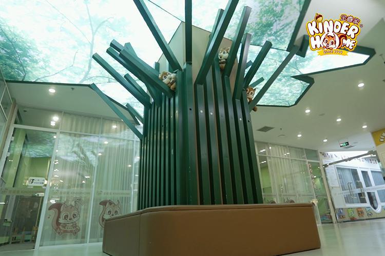 金睿家中心的设计充满着童趣,一进门就可以看到一棵大树,上面有很多金睿家的吉祥物小金睿,球球经常和小伙伴在这里玩耍,幻想自己是一只小松鼠,而我也经常在这里等他放学,他很喜欢跟我分享他跟金睿的故事,简单的家长休息区,却有着很多我跟球球天马行空的故事。