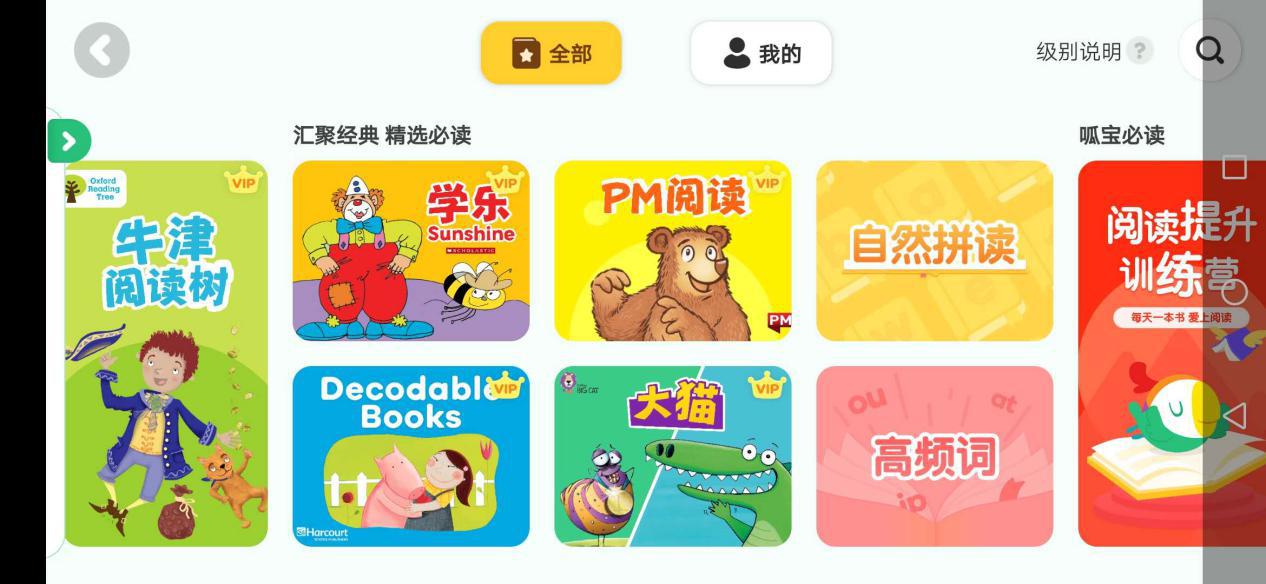 呱呱阅读与近二十家国际顶级儿童版权资源平台合作,引进大量经典英语分级阅读绘本资源。如大名鼎鼎的牛津阅读树、柯林斯大猫系列、尼尔森PM分级阅读、学乐Sunshine等经典分级读物,更专门引进霍顿·米福林·哈考特出版社的美国课堂配套拼读读物Decodable Book等,均是在考虑自然拼读的基础上精选的优质经典阅读资源,让3-12岁儿童可以在英语阅读的基础上实践自然拼读技巧。