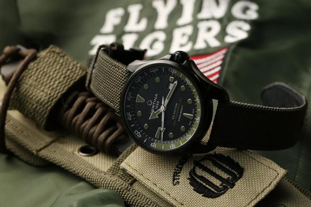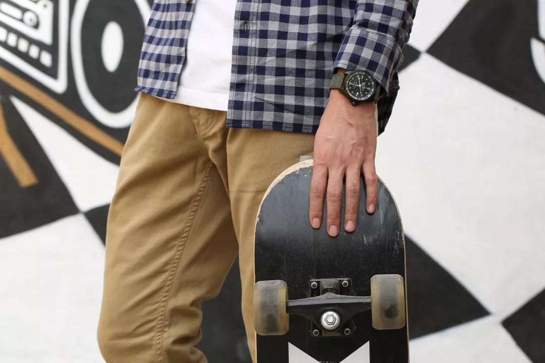 穿着飞行员夹克,千万不要再佩戴电子表或优雅浅色系表盘的腕表了!此时“绿贝雷”是不二之选,不像纯黑色表盘那般暗沉,也不像纯军绿色那般太过和谐。绿贝雷给人的感受就是那么刚刚好,非它不可。
